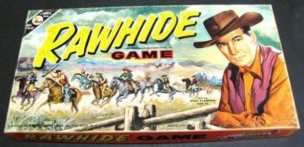 An early children's game based on the long running TV series of the same name. This game was published shortly after the beginning of the TV series which ran from 1959 to 1966. Although the show is best known for having Clint Eastwood, the star of the show was Eric Fleming who appears on the box cover of the game. The game is a basic roll and move game...