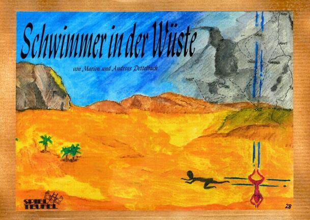 In English the title means Swimmers in the Desert which for some will give away the "setting" as that of the novel and film, THE ENGLISH PATIENT. The situation is that of the beginning of the film. Players secretly place swimmers on individual boards with the aim of recreating the exact placement of the swimmers on the game board. The game is played with...