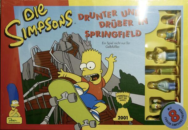 Each player is one of 8 "The Simpsons" characters. There are 5 Springfield locations (Kwik-E-Market, School, Moe's bar, nuclear power plant, TV channel). On each location the player can gat a typical thing (e.g. beer at Moe's), a new order card or fullfill an order card he has on his hand. The player who fullfills 3 order cards first, wins the game. On...