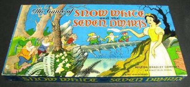 Snow White and the 7 Dwarfs Game This game was issued by Tek Toothbrush/Johnson & Johnson and produced by Einson-Freeman Co. © 1937. The cardboard sheet w/game board and playing pieces opens to 14.5x21.5". The board features choice illustrations including character portraits and inset story scenes. Has attached panel w/punch-out playing pieces and...