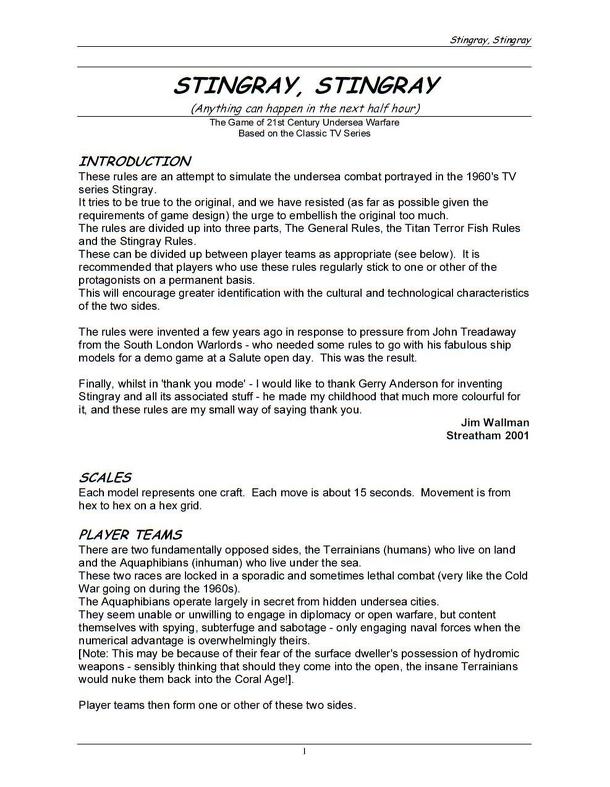 Subtitled "The Game of 21st Century Undersea Warfare Based on the Classic TV Series." A miniatures game of combat between underwater craft. The game is played on a hex grid. Each move equals about 15 seconds in game time and each miniature represents one craft. From the rulebook: "These rules are an attempt to simulate the undersea combat portrayed in the...