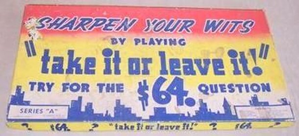 The Gamemaster (called Umpire in the rules) asks each player a question. The first question is worth one dollar. Each correct answer after the first question is worth double. The top prize is sixty-four dollars. A wrong answer ends the first part of the game for a player and forces that player to surrender all winnings to the "Jack Pot Fund." After all...