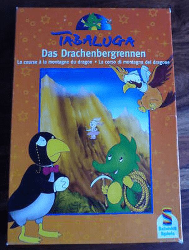 Tabaluga is a cartoon character created by Peter Maffay, Rolf Zuckowski, Gregor Rottschalk, and Helme Heine. In Tabaluga Würfelspiel, you start in the ice and snow, and travel along the path to green grass and blue skies. Special items on a space allow you to advance to the next space with that item. The skills emphasized are counting and matching. The...