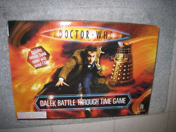 From the box: "The TARDIS is running low on Artron energy and the Doctor needs your help. Step aboard and travel through time and space trying to be the first player to reach the water tower refuelling station in the centre of Cardiff. Sounds easy ... but not when the evil Dalek Caan is roaming the universe trying to EXTERMINATE you!! In this fast paced...