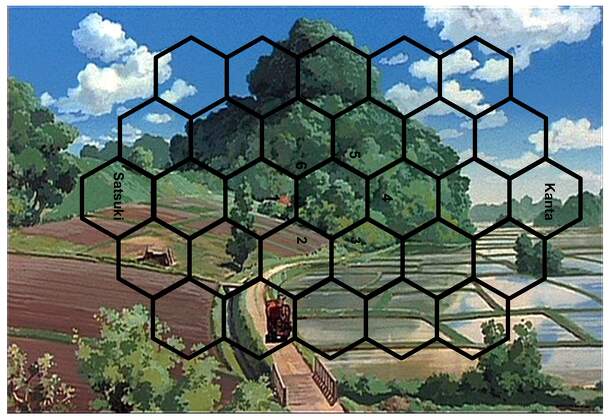 This game is based on the film "Tonari no Totoro," specifically the scene in which Mei lost her way. Players play as Satsuki and Kanta and need to catch Mei and bring her back home. This is a print and play game. The pdf includes the following components: - movement cards - player and Mei tokens - board with hexagonal spaces In each round, a 6 sided dice...
