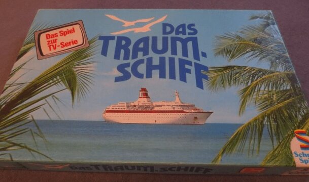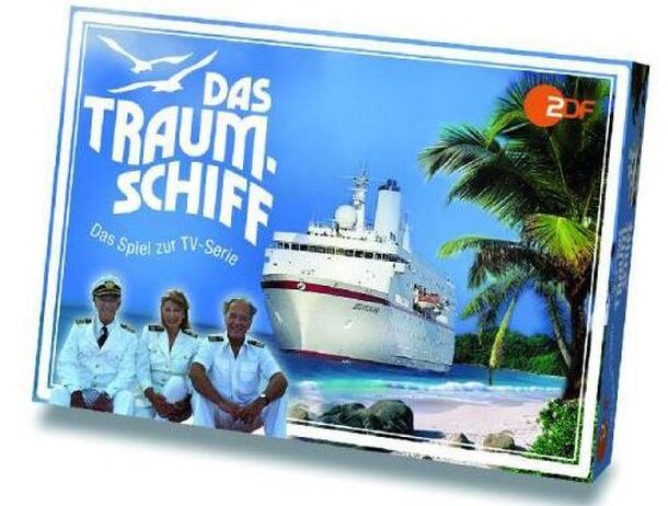 A new game that is using a Traumschiff theme (Das Traumschiff is a German TV series). Each player draws five destinations that he/she has to visit. When a player reaches one of his/her destinations, he/she has to answer a question from the card (a die roll determines which one). If the player answers correctly, he/she has another move; if not, he/she has...