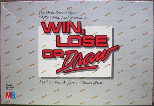 From back of box: "This simpler Junior version of Win, Lose or Draw is designed for children ages 8 to 11! To play, kids pick a card, select a word and call out its category -- People, Places or Things! The sketching starts! The guessing begins! It's a race against time. Correct guesses reward both the Sketcher and the Guesser with chips. Collect enough...