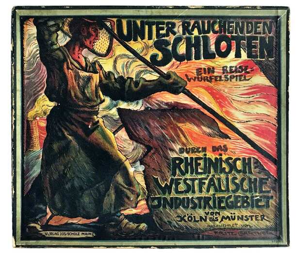 Industry themed game (under smoking chimneys perhaps, smoking because of the furnaces etc. after the war. Educational, very much so for children because that is the world they will be living in. A simple game in that you roll and move and follow the instructions where you end your move. There are 60 different spaces and the first to get to '60' wins. —user...