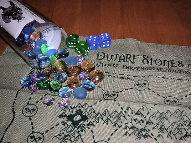 Essentially an ultra-streamlined fantasy wargame cross-bred with an abstract strategy game. Players start with a fort in one corner of the board. They slowly add armies and spread out across the board (on a defined point-to-point network) to take over mines which allow them to produce gems (which must be transported back to the fort to be useful). Gems may...