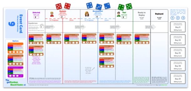 The game is played in teams of four to six people, one game per team. Each team has a playing board representing a Kanban task board, and a collection of story cards representing work to be done. Teams compete to maximise profit by optimizing the flow of work. During the game the teams construct charts based on data from the game including a Cumulative...