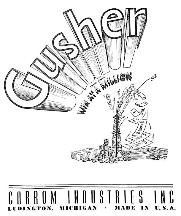 Gusher is the direct ancestor of Oil Power and King Oil and is similar in concept. The board is a hollow box with irregularly shaped wooden spacers between the top and bottom. The game board is shaken during the game setup to randomize the location of the wooden spacers (oil deposits). The playing surface is divided into 60 real estate parcels, each of...
