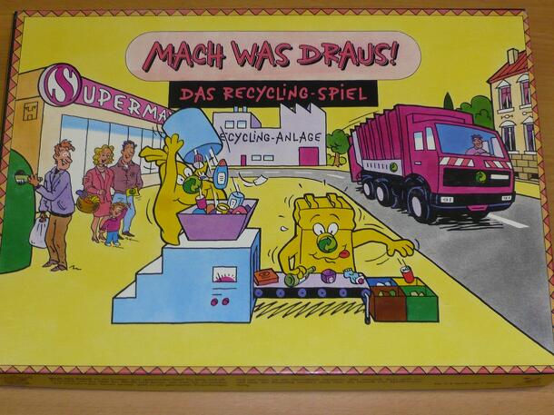 This game is about recycling the different types of waste like glass, paper or plastic. It shows the ways of the waste through the recycling process. The players buy goods in a supermarket or collect it "on the street" wile moving their pawn (a nice truck you night know from "Auf Achse") and than have to recycle the waste. On the game board their are...
