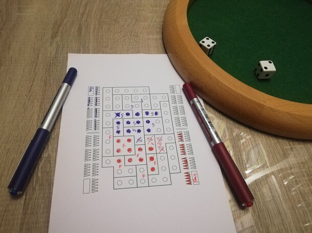 Oil Strike! is played on a board depicting an oil field divided into areas of two, three, and four sites. Players start with one area (size depending on turn order) and claim a new one each turn as long as they last. The other thing a player does on each turn is select one of their sites and roll two dice, with a high enough roll producing oil and a lower...