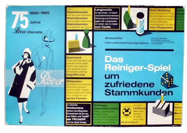 Extraordinary equipped game from the sixties, even in German player circles scarce and obscure. Game consists among others of: 3 grey factories, 10 red advertisement pillars with ads from the time produced, 10 brown laundry company headquarters, 15 orange franchise houses, 15 white drop-by stations, 150 ! chimneys in 6 player colours and much more! All...