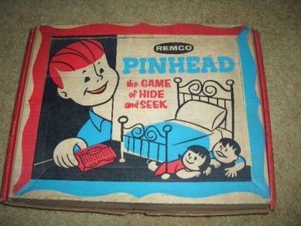 Simple children's game which combines Bingo with a top. The bingo aspect is that the winner is trying to mark a line of three on a 5x3 card of animals. Instead of "Bingo!" the player shouts "Pink Elephant!" Winner of the particular game gets point chips from other player depending on circumstances. PLayers then shuffle cards and start another round....