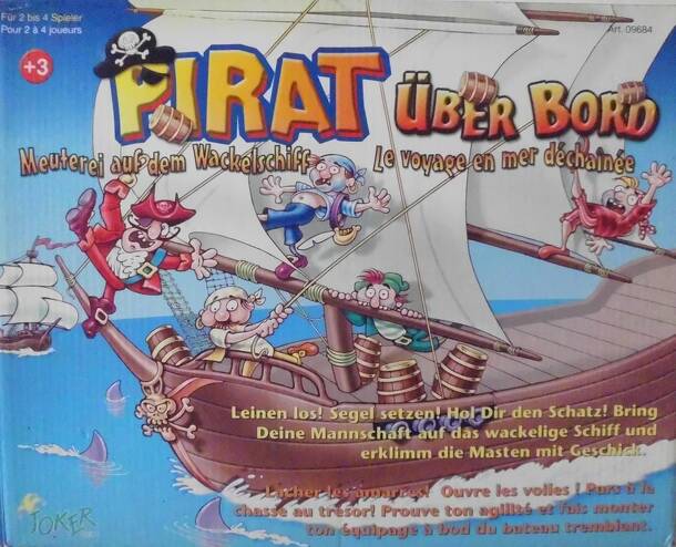 Save yourself if you can! You will need all your ability and a little bit of luck to stay onboard the ship, when the wind makes your boat stagger and the waves cover it over. Roll the dice and try to maintain the load in perfect balance. If your pirate remains in the boat when all the others have fallen into the water, you are the winner. Components: 1...