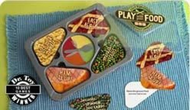 This family-friendly game offers food for thought with everything from fun food trivia to silly charades. Choose from categories like Ham It Up!, Use Your Noodle, Mixed Veggies and Easy as Pie. The game box is reminiscent of a frozen TV dinner tray. Players spin the "fork, knife, and spoon" spinner to determine the category for their turn, and read the...