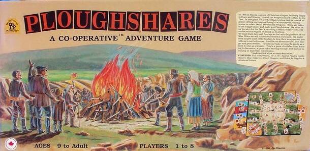 From the box: In 1895 in Russia, a group of Christian villagers, believing deeply in Peace and Sharing, burned the Weapons given them by the Tsar. We become those villagers driving wagons through the countryside, visiting homes to collect Firewood & Weapons. We take these to the Village Center and make Ploughshares. Watch for the Tsar's patrolling soldiers...
