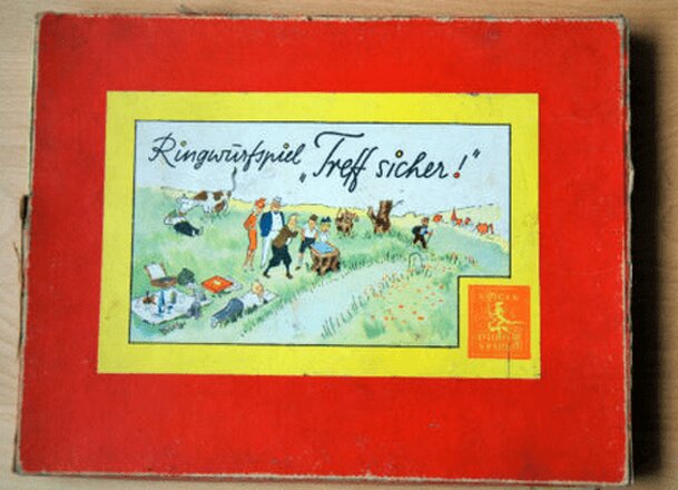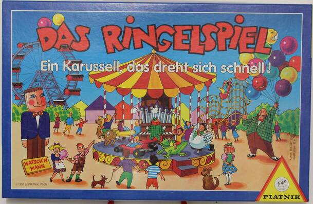 20 rings are placed on the game board, "face down" (so the ornament on top cannot be seen). Each player has a little board with a combination of five ornaments. An arrow is spun and points to a color. The active player now takes one of the rings on a square of that color and checks the ornament - if it is one on his/her board, he/she puts it on his/her...