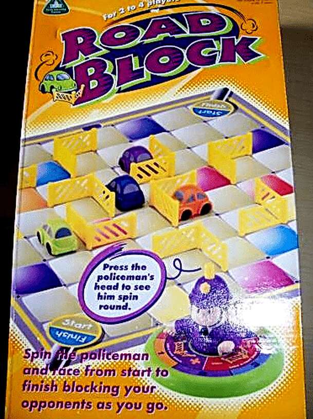A car race for up to 4 players from corner-to-corner on an 8x8 board. The novelty policeman-shaped spinner shows both the distance of allowed orthogonal movement and whether a 'road block' (an L-shaped fence) is added or removed from the board. The physical construction of the board, where each intersection can hold a single peg from a fence, prevents...