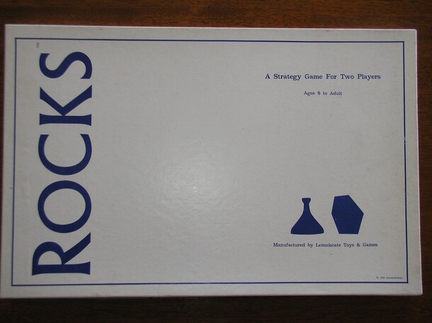 An abstract roll and move game for two players. Each player has eight pawns, divided between two start areas. The goal is to be the first to get one pawn to the center of the board, following the pathways. This is complicated by the twelve polished rocks that start on designated spaces. pawns cannot pass rocks, but by landing a pawn on a rock exactly, a...