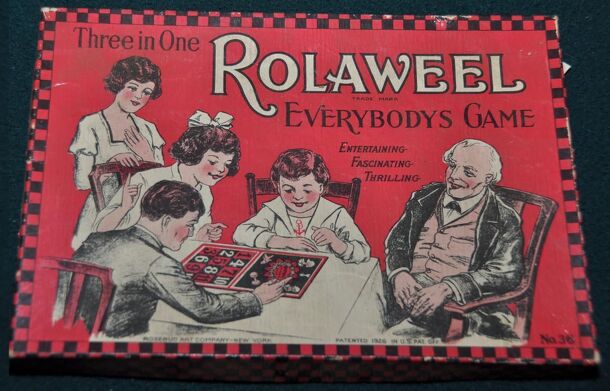 Rokeeto is a 1960s space game of skill. The object of the game is to knock over plastic-colored cones positioned on a space themed board. To knock down the cones a player holds and tilts a small board with a groove. Each player rolls a colored dice to select a colored target cone on the board. Then Resting a larger cone in the groove the player blows into...
