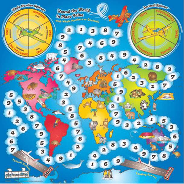 Be your own pilot and travel to adventurous places throughout the world. 'ROUND THE WORLD WITH PLACE VALUE provides exciting game experience while working with place value and number rounding. The broad scope of this game takes the students learning the numbering system for the first time, to learning to round numbers, to counting places after the decimal...