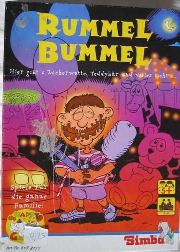 A hectic dice game to collect the designated number of coconuts. On each turn, the player throws 3 D6 and one red six-sided die (value of 1-3)simultaneously. The red die determines how many of the natural colored dice may be used to move the counters. Counters are either monkeys or a tiger. Monkeys move clockwise around the track to get coconuts and return...