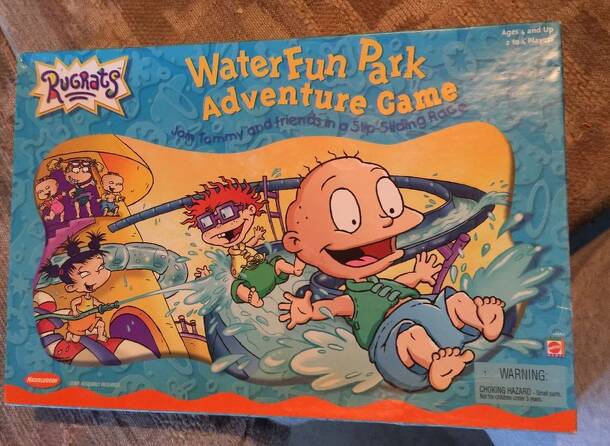 Race your favorite Rugrats character along the colored path and up the Super Slide steps. The first character to reach the top and slide down into the middle space is the winner! On your turn, spin the color wheel and move your character forward to the first space that matches the color on the spinner. If you land on a ticket space, spin the wheel again...