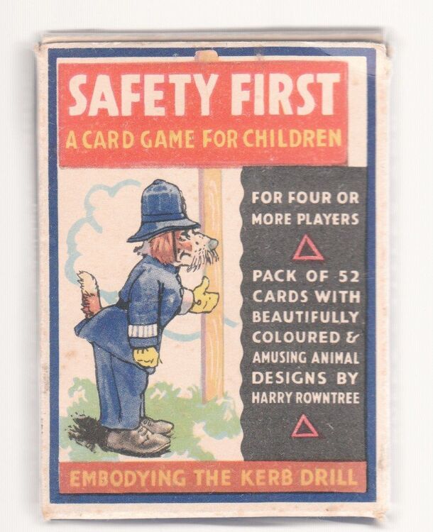 Card game consisting of 52 cards featuring 5 sets of eight Citizen cards and four sets of three Vehicle Cards. Shuffle them together then deal out an equal number of cards per player and everyone places their cards face-down in a pile in front of them. The game is played a little like Snap, but with a twist. As players reveal a card in their turn, "Safety...