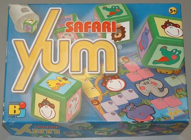 A simple and fun dice game for young children! Players roll five dice with animal pictures (lion, monkey, giraffe, crocodile, elephant and hippo) on each side, and try to collect sets of matching animals. The "Lion" picture is "wild". After the first roll, players are allowed to re-roll the dice of their choice up to two times. Players then place the...