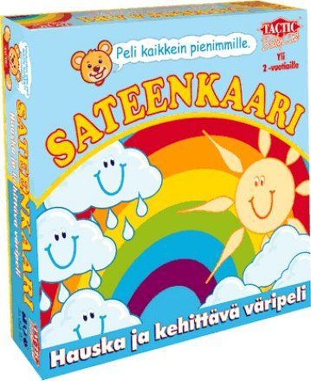 Players try to repair holes in their umbrella before rain. Each umbrella has 5 different colours, player throws a dice, if the dice shows a colour that player doesn't already have he gets to put a counter on that colour, if the dice shows grey a rain cloud is put on the table. When there are five rain clouds, the game ends. Any player who has got five...