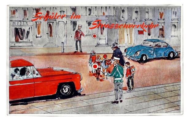 Each player starts at one corner of the game board with a car, a bicycle and a pedestrian. Movement is determined by a die. The players have to get their pedestrian to a space marked with a „Z“ and the car and bicycle to the opposite starting spaces (for example: A to B), while minding the traffic rules. By the roll of a 1 or 6 the player has to draw a...