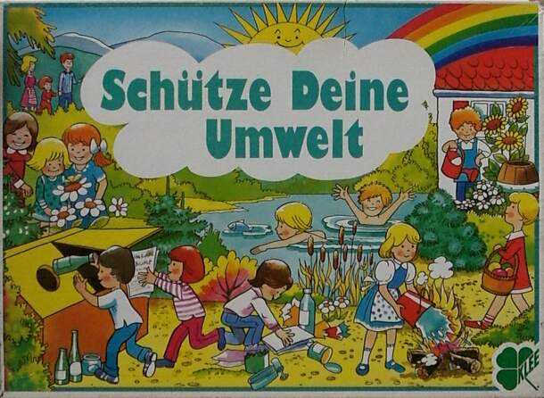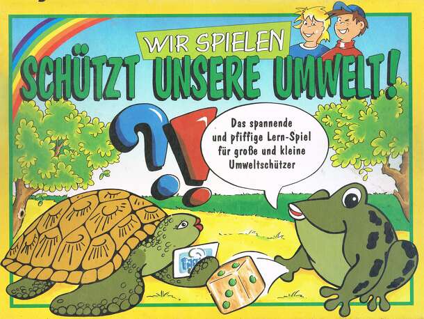 Text on the box (translated from German): The game: Knowledge, guessing, imitating, laughing, rolling dice, tactics, luck ... you really find everything in this game about life and environment! It is exciting, fast and is fun to play again and again. Want to bet? The game consists of a board showing a track of 60 spaces between "start" and "finish" and 3...