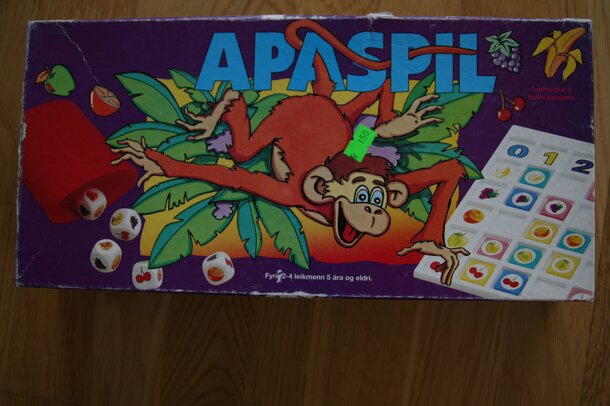 From the back of the box: How do you play Going Ape? By roiling the dice and collecting fruits. Different for beginners and seasoned players, beginning players collect the same fruits but seasoned players collect every fruit. The one who collects the most fruit wins and gets a monkey in reward. The one who has the most monkeys at the end gets the main...