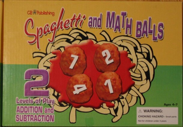 Each player gets a spaghetti bowl game board and six meatballs. All players put their meatballs above the spaghetti pile on the big game board. All players spin the spinner and moves the number of spaces indicated. They must answer the math problem posted on the space they land on. If they answer the math problem correctly, they get to continue their turn...