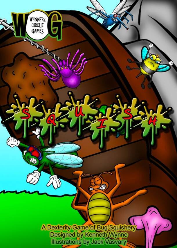 Squish is a fun, family friendly, dexterity game for 1 to 6 players in which you drop player order cards (also referred to as boot cards) in an attempt to squish bug cards that are on the ground. You try to be the player with 10+ points at the end of a round. The bug cards are thrown into the air at the beginning of the game and fall where they may. After...