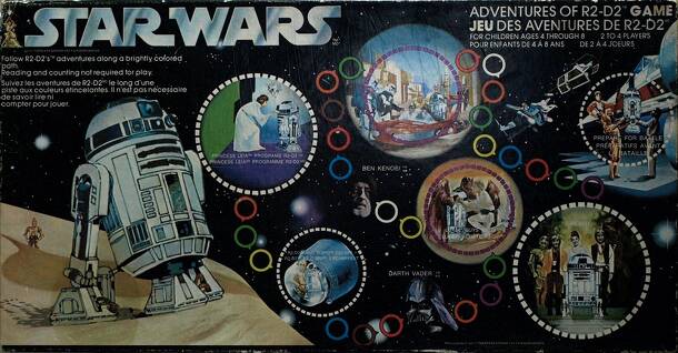 Experience the adventures of R2-D2, the true hero of the Rebellion! Players take turns spinning and moving R2-D2 to the next colored circle along the adventure path. Watch out for the purple adventure circles that send you backwards and try to get to the white adventure circles to move forward. The first one to return to the Rebel Base on Yavin IV after...