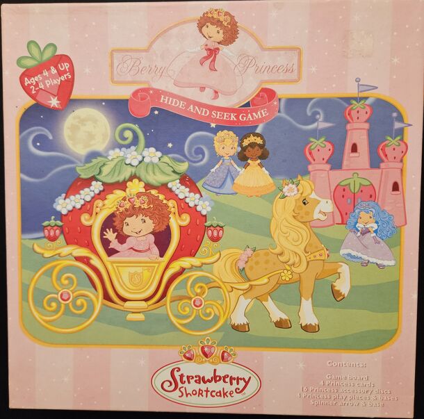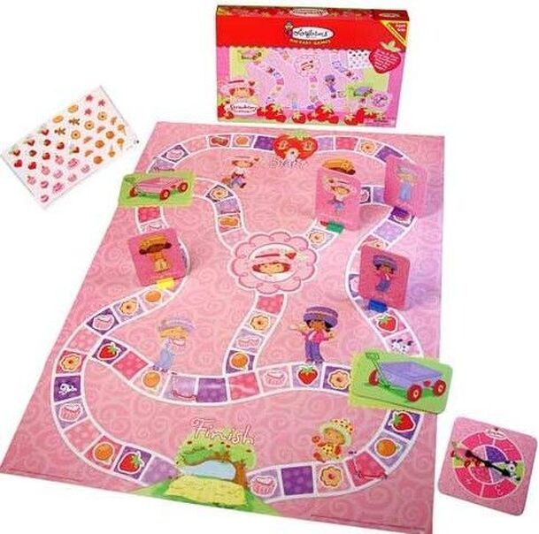 "Strawberry Shortcake and her friends need to find all their princess accessories in time for the ball. You can help Strawberry Shortcake, Orange Blossom, Angel Cake, and Frosty Puff seek out their belongings by using your memory skills. The first player to collect her belongings and get to the entrance of the castle for the ball wins!" Includes a colorful...