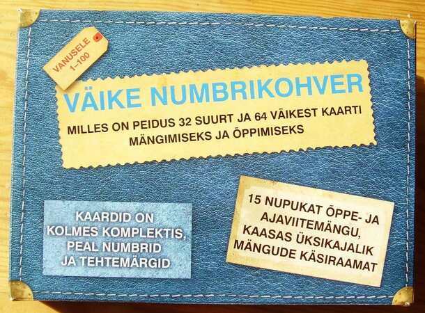 2 decks of smaller-size and 1 deck of larger size cards with numbers 1-20 with 15 different games. Some games are old classic like memory etc. Some are new games. f.e. Tell a number: Both smaller cards with numbers 1-12 are used. Each player gets 6 cards in hand. In his turn player tell a number from 1 to 24 and all players try to find 2 cards with sum of...