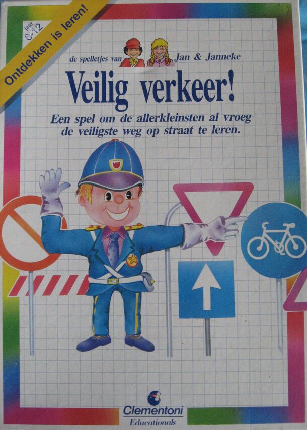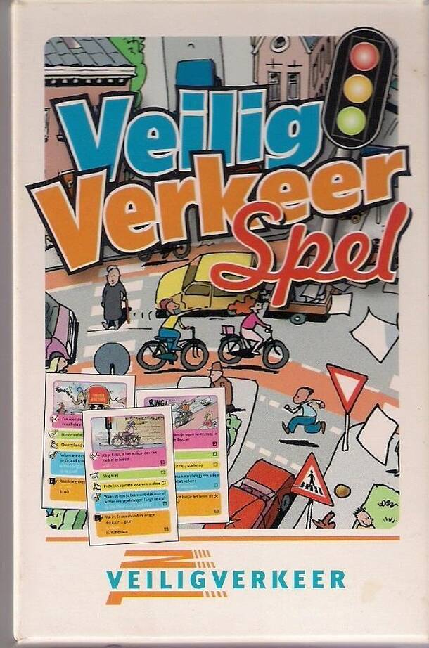 An educational card game published by the Dutch Safe Traffic Agency, meant for teaching and checking knowledge of Dutch traffic rules and regulations. Game contains a to-be-assembled die, cut-out chits and playing cards. Per round the top card is drawn and a die roll decides which category question or task must be correctly answered to win that category's...