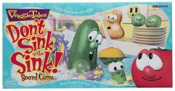 Who but a bunch of veggies would think of having a race across a sink full of dishes, pots and pans? Usually the Veggies will be able to hop across the sink, balancing on dishes and other things hidden under the soap suds. But be careful! Sometimes then will fall into the sink and disappear for the rest of the game! So remember where the solid landings are...
