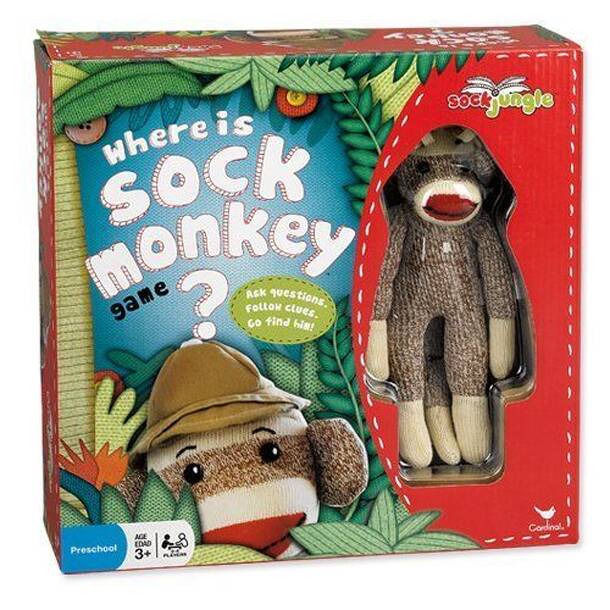 Can you find him? Follow the clues and search through the jungle before time runs out. The player that finds sock monkey wins. Comes with a real Sock Monkey. One player hides the Sock Monkey in the house. Players turn over a tile on their turn. If it is a question (Where is Sock Monkey? In a room with a bed?), the hider answers "Yes" or "No", and the clues...