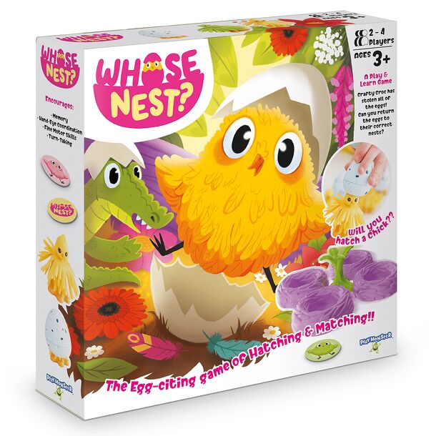 Crafty Croc has stolen all the eggs! Luckily, we have his swag bag. Can you return all the eggs to their correct nests? Roll the dice! If you roll an egg, take the egg and place it in a nest. Will it hatch as a Chick or a Croc? If a chick, take a token...if a Croc, oh no! put the egg back in the bag. Each player after their go, spins the nest! Can you...