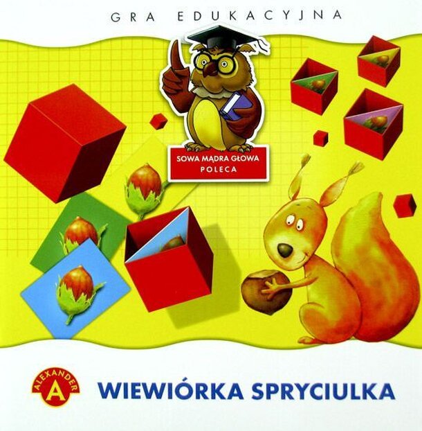 A push your luck with squirrels game for children! Each turn the active player throws 8 boxes. If none of the boxes fell with the open side up the player ends his turn. If he threw at least one box on it's open side up he puts the nut that was inside the box in front of him. Now he can either end his turn and gain all the nuts he has in front of him or...