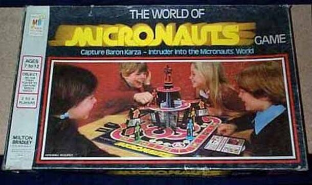 "Capture Baron Karza-Intruder Into the Micronauts' World" This is a boardgame based on the classic Micronauts toys. Gameplay is the usual roll-the-die-and-take-a-card fare. Playing pieces are photographs of the toys mounted on cardboard with plastic bases. The board is a fairly impressive 3-D cardboard creation that takes a few minutes to set up. When...