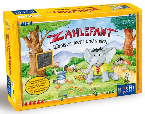 Objective: increase your math skills six different math games 1a more, less, equal: Two players (groups) form a pile of cards (5) each; top cards (show numbers) are placed simultaneously into middle of the table showing sets of numbers only. The player (team) who reacts first - covering 'Zählefant' card with their bare hand if their card shows less, with...