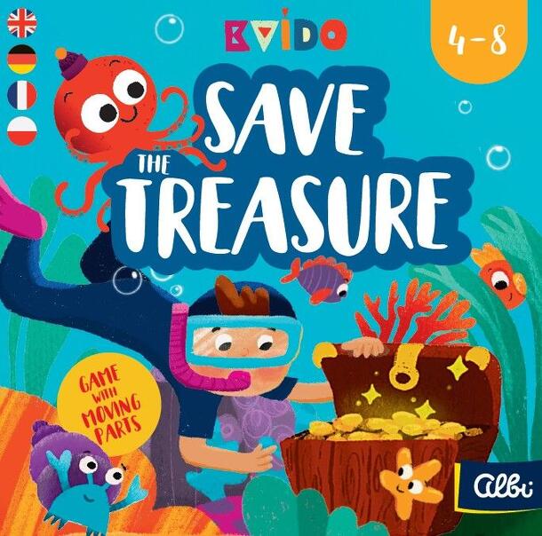Zachraň poklad ("Save the Treasure") is unique children's game with a double-layered board and moving parts. A ship carrying precious treasure has wrecked in Kvido, and its coins have scattered across the ocean floor. Fortunately, the ship's captain survived and asked his diver friends to retrieve his gold coins from the sea bed before the pirates arrive....