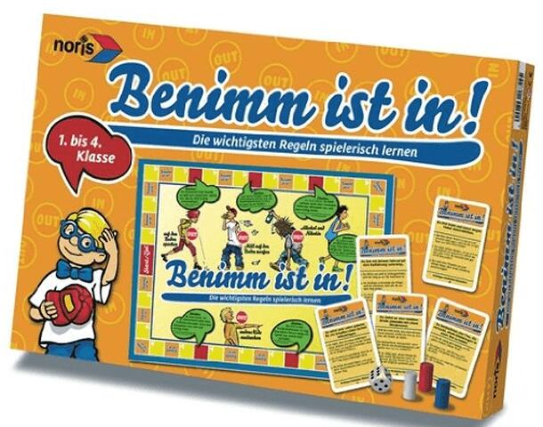 The game comprises 110 cards with 220 situations taken from daily life. Each card describes the situation and suggests three different ways of behaviour, only one way is the correct one. Players roll the die and move their pawn, the end spot of the move determines what happens: On an empty spot they stop or buy another move with 3 Chips. On a "Benimm ist...