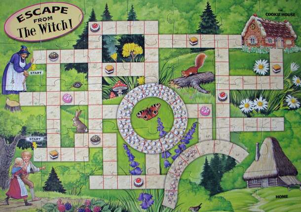 From the Rulebook: "Both players roll the die. The player with the highest number goes first, and chooses whether to be Hansel and Gretel OR the Wicked Witch. Both players place their markers on their own Start squares. - On your turn, roll the die and move your marker that number of squares. - You can move in any direction. - If you land on a sweet, play...